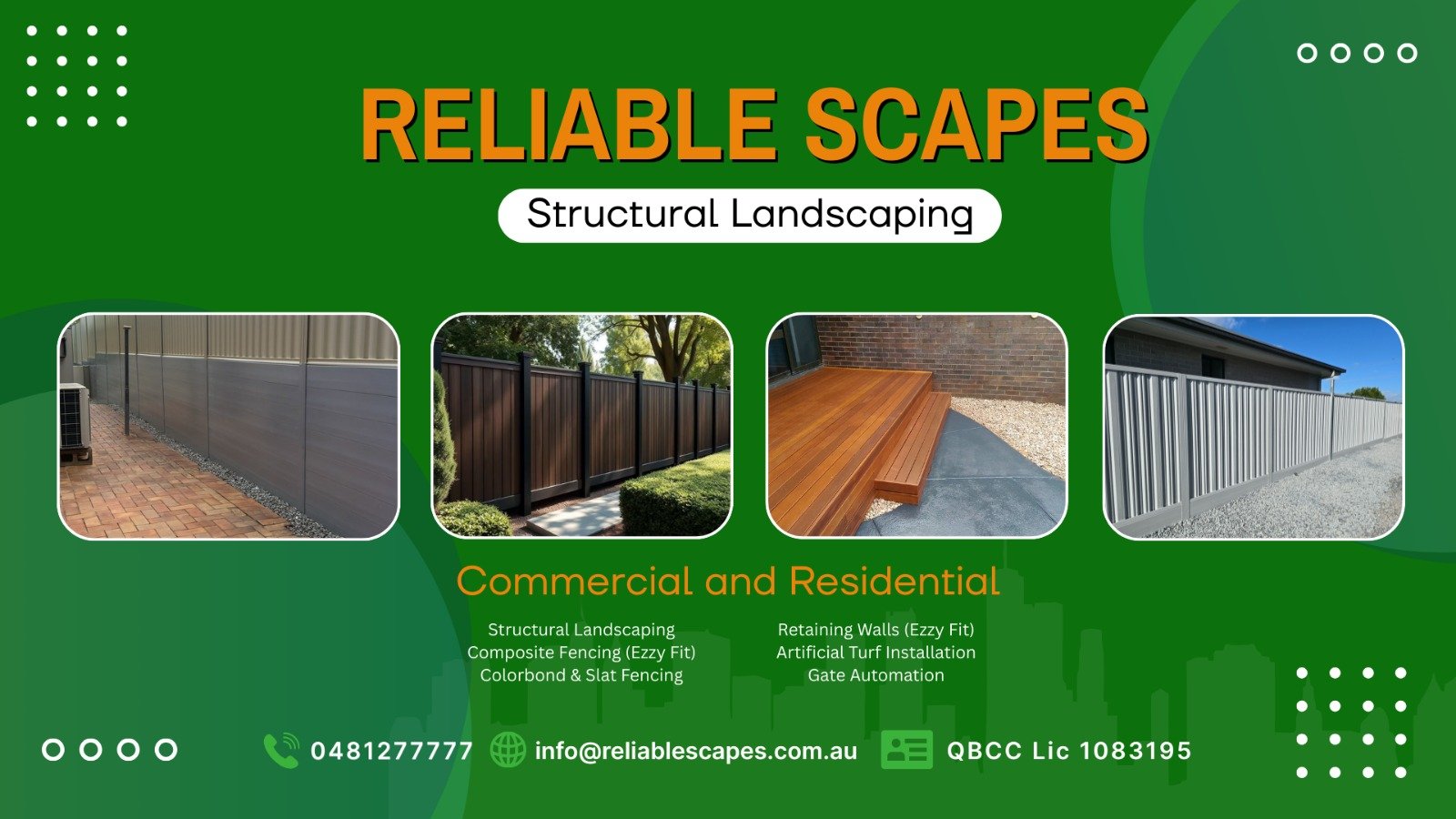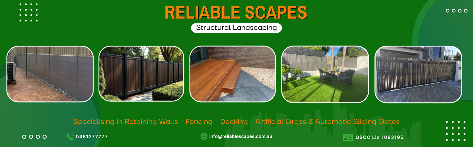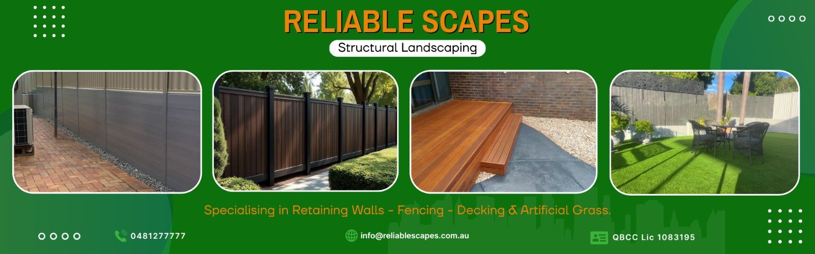 RELIABLE SCAPES Brisbane’s Trusted Outdoor Transformation Experts is a locally owned and operated landscaping company based in Brisbane, specialising in retaining walls, composite and fencing, and artificial grass installation. With over 38 years of hands-on experience, we’ve helped both residential and commercial clients bring their outdoor visions to life.